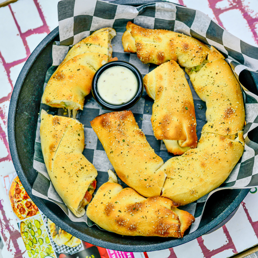 All Salads: lettuce, bell peppers, red onion, tomatoes, black olives, cucumber, and shredded cheese.
